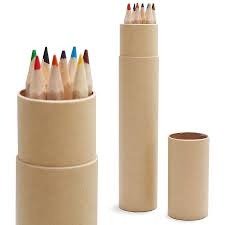 Contiene 12 lápices de colores en caja cilíndrica de cartón Kraft.